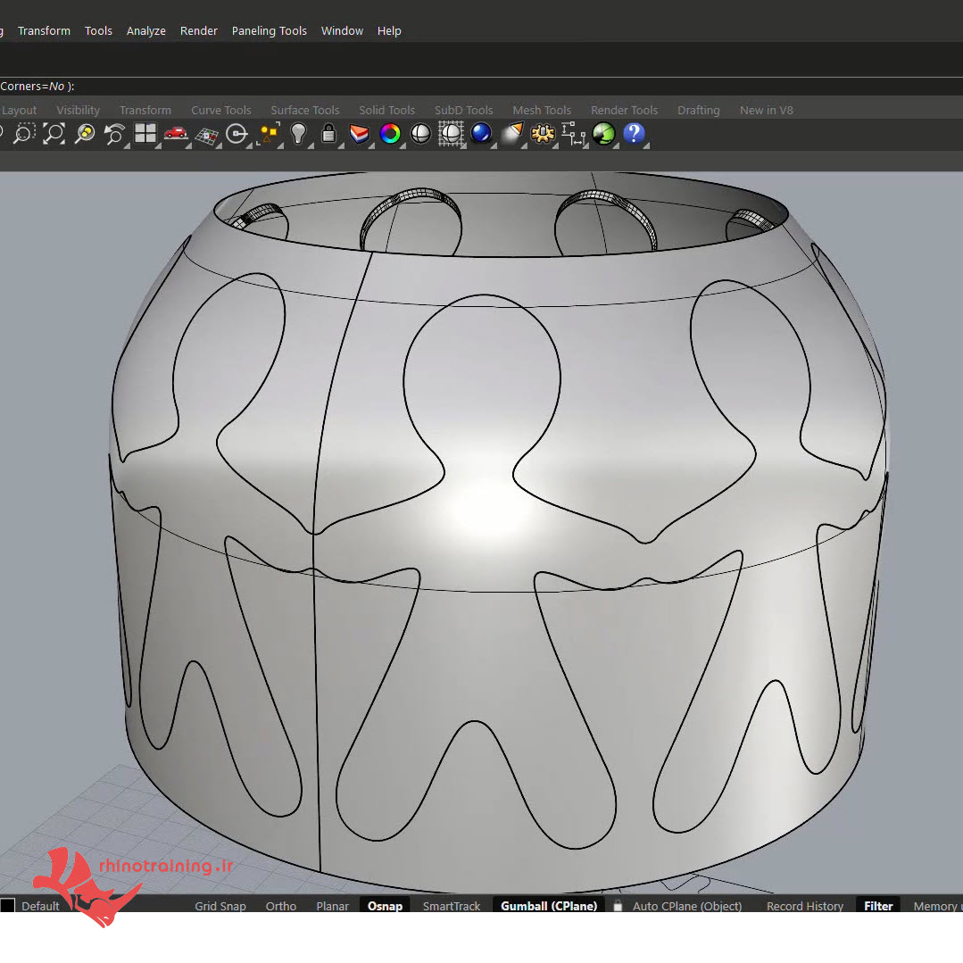 دوره آموزش راینو پیشرفته شامل بیش از 20 ساعت آموزش راینو پیشرفته به صورت پروژه محور است. قبل از دیدن این مجموعه حتما باید دوره آموزش راینو مقدماتی آقای مهندس سیروس حامدی فر را گذرانده باشید.
